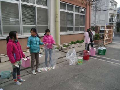 今日は環境の日。朝早くから環境委員会の子どもたちが,準備をして待っていました。