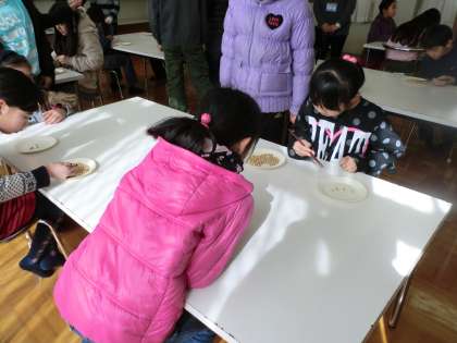 2月5日,豆つまみ大会二日目,今日は高学年です。