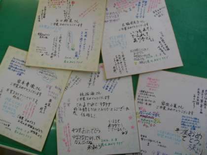 9時からの学習活動,10時からの朱七みどりクラブには,いつものメンバーが参加しました。最後にみんなで卒業する6年生にメッセージを書きました。