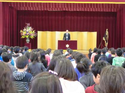 着任式に続いて行われた始業式では,校長先生から,一人一人が頑張って,さらにすばらしい学校にしましょうというお話がありました。