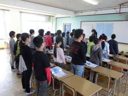 今日から本格的に授業が始まりました。6年生は,音楽の授業をスクールサポーターの内田 雪子先生にお世話になります。授業の最初に内田先生は,「レベルの高い歌声や演奏を目指しましょう。」とお話しされました。1年間の学習を通して,少しずつでも歌や楽器の演奏が上達できるようになってほしいです。