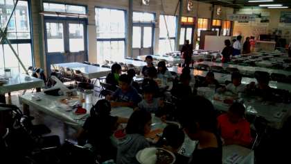 いろいろ体験した後は、食堂で昼食です。メニューはカレーライスと淡路島で作られたヨーグルトです。モリモリ食べています!