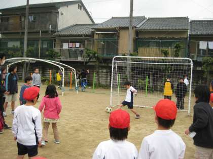 お兄さん,お姉さんみたいに強く蹴れないけど,うまく止められないけど,頑張った低学年の子どもたちでした。
