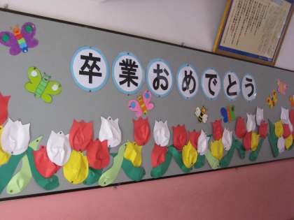 校内の掲示板も卒業を祝う飾りつけに変わり,卒業ムード一色になってきました。