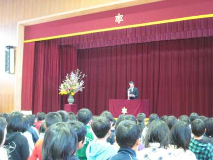 入学式では,『話は目で聞くこと』『自分から挨拶をして,友達と仲良くすること』『好き嫌いなくよく食べて,よく遊び,体を丈夫にすること』を話しました。これは一年生だけではありません。どの学年の子ども達にも言えることなのです。学習の基本は,まず正しい規範意識を身に付け,丈夫な体を作ることだと思います。今,子ども達の生活が大人と同じ様に夜型になっています。大人に合わせるのではなく,『早寝・早起き・朝ご飯』と,子ども達のリズムを考え,しっかり心と体を育んでいきたいと思います。