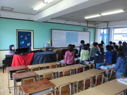 この日も内田先生に指導していただき,6年生が美しい歌声を響かせていました。練習を積み重ねて,どんどん歌も演奏も上達してほしいと思います。