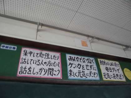 教室の前,黒板の上に掲示しています。意識して,いろいろな行動に取り組んでくれることと思います。