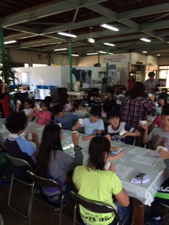 バター作り体験をしました。牛乳と生クリームが入った容器を一生懸命振り,手作りのバターができあがりました。いつも食べているバターとは少し違った味で,苦手な人も挑戦していました。