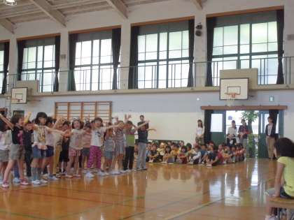 2年生は「ちいさな はたけ」という曲に合わせて振りをつけて踊りました。