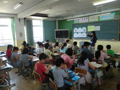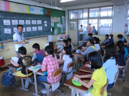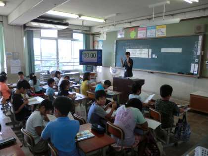 上の写真は,4年 算数「何倍でしょう」,5年 家庭「ひと針に心をこめて」,6年外国語「When is your birthday?」の授業の様子です。