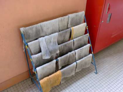 ほうきはきちんと並べてロッカーに,雑巾はしっかり絞ってパンパンしてから干しましょう。
