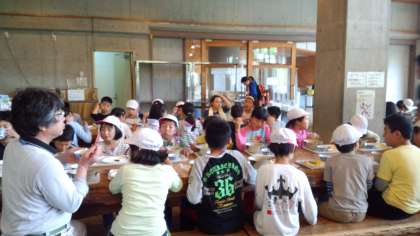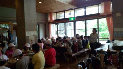 昼食は,花背山の家の食堂での初めての食事です。