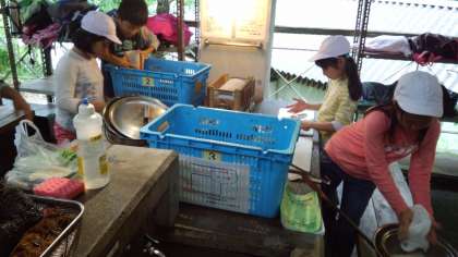 今回は豚汁とご飯です。今回は、前日の経験を生かして、自分たちで協力して調理します。うまくできるでしょうか?