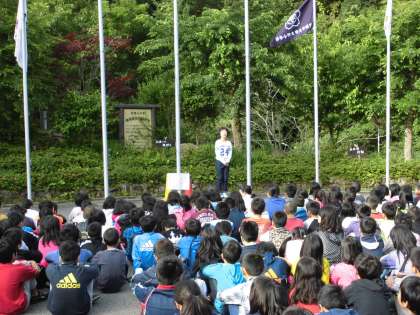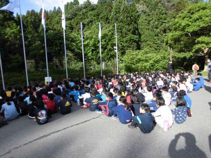 山の家に集まっている4校のお友達と学校紹介をします。