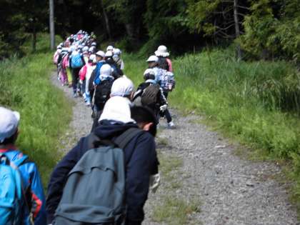 とても良い天気の中出発しました。帰ったら,冷たいジュースが待っています。