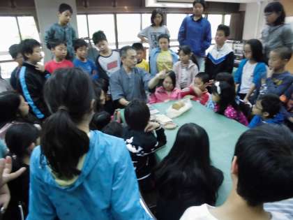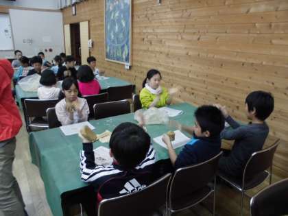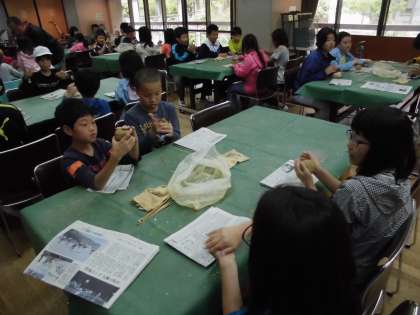 朝食後,荷物整理とお世話になった部屋の掃除をして,粘土で花背焼を制作しています。