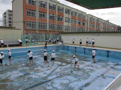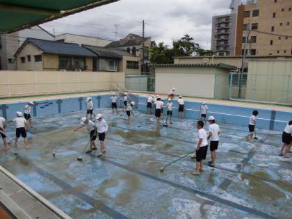 プール清掃がんばりました