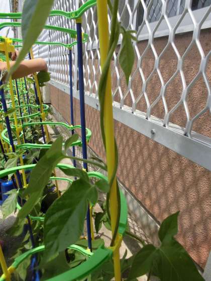 あさがおのつるが伸びてきました。