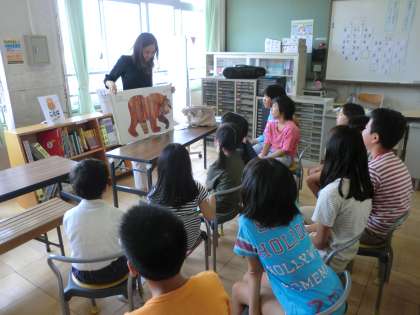 その後は,「くまさん くまさん なにみてるの?(Brown Bear,Brown Bear,What Do You See?)」の英語版の絵本の読み聞かせをしていただきました。
