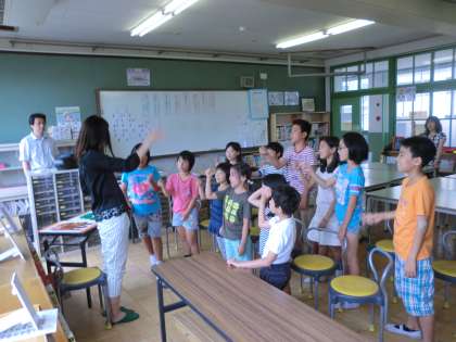 今回初参加の人もいたので,先生に教わりながら,歌ったりジェスチャーをしたりしました。