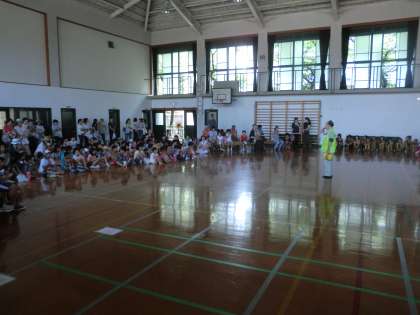 7月12日(日)「PTA親と子の集い」が行われました。開会式では,バトントワリングの演技や朱七・朱五の見守り隊の方への感謝状贈呈などが行われました。