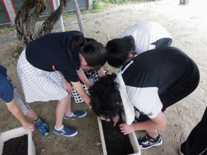 7月22日(水)地域の方にプレゼントをする花の種を植えました。