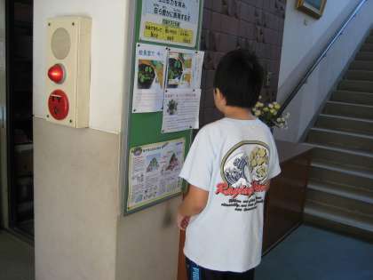 職員室前には校長先生の掲示板があり,足を止めて熱心に記事を読んでいる子もいます。