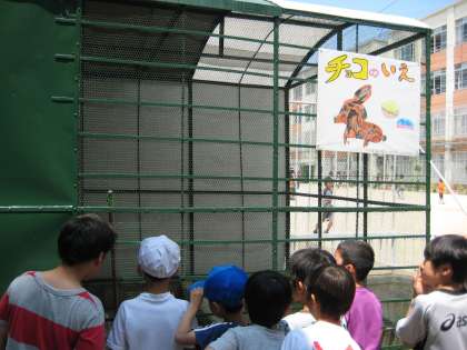 きっと体の毛の色からこの名前になったのでしょう。かわいい名前です。飼育小屋には,飼育委員会の子どもたちが作ったすてきなネームプレートも取り付けられました。
