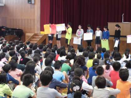 これは,児童会からの呼び掛けで,各委員会がそれぞれの委員会の特性を生かして,学校全体のあいさつを盛り上げようとする取組です。