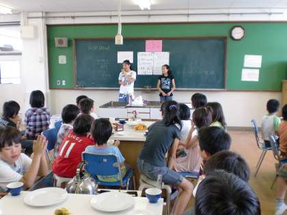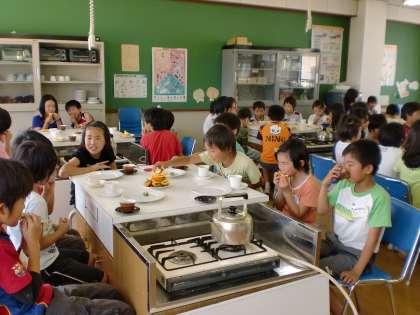 そして、今日がそのお茶会の日。紅茶とフルーツのおもてなしに、少し緊張したながらも、うれしそうな子どもたちです。普段あまり飲まない紅茶にどきどきワクワクしていたようです。感想を聞かれて、「とてもおいしかったです。」と答えていました。ペアの5年生とゆっくりお話できたこともうれしかったようです。今年1年、いろいろな形で仲良くしていけそうですね。