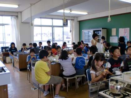 どきどきしながら,家庭科室へ入り席に着きました。3年生と5年生が一人ずつペアになり,自己紹介をした後,一皿の果物を食べながらひとときを過ごしました。はじめは互いに少し緊張していましたが,紅茶を飲みながらあちこちで笑い声が上がりました。 来週は読書週間で,5年生が本の読み聞かせを3年生にしてくれます。またまたとても楽しみです。