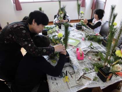 作り方が難しいところもありましたが,『花育』の先生方に助けていただいたり,保護者・地域の方々に教えてもらったりしながら,参加した子どもたちは素敵な正月飾りを完成することができました。