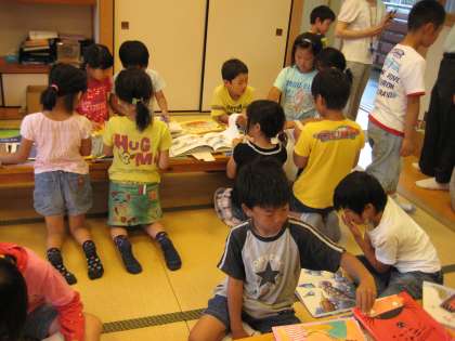 子どもたちは,手に取ったり,読みふけったり・・・真新しいたくさんの本に囲まれ,どの子も目を輝かせていました。そんな様子を見ていると,本が嫌いな子なんていないような気がしてきます。どんなふうに本と出会わすか,そのことを大切にしていきたいと思います。