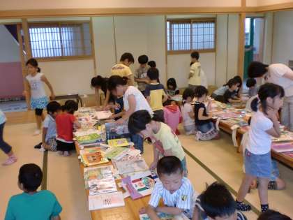 見たことのない本がたくさんあり、子どもたちは本に夢中でした。