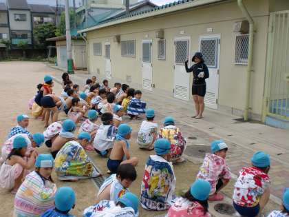 いざ、プールに入ると、冷たい水にキャーッと声が上がりましたが、子どもたちはとっても楽しそうに初めての水泳学習を楽しんでいました。