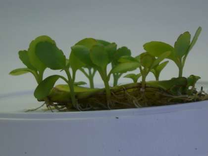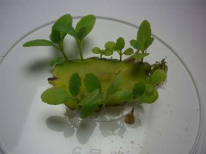 葉を,水の入った皿に浸けておくと,子どもの芽が出てきて成長していきます。いつ,どのようにして芽が出てくるのか,観察が楽しくなってきます。