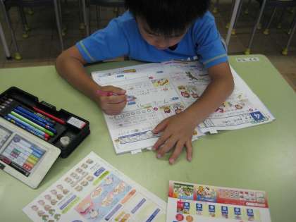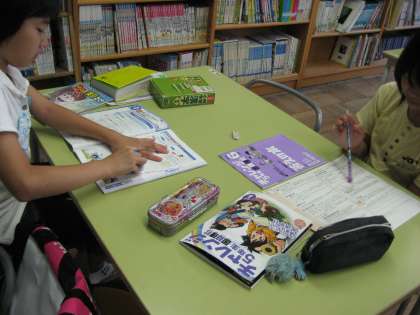調べ学習室では・・・聞こえてくるのは,鉛筆の音と雨の音だけ。みんな家から持ってきた自分の勉強に黙々と取り組んでいました。