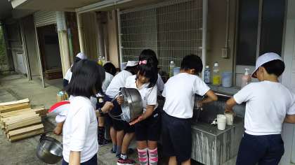 5年山の家野外炊事後片付け