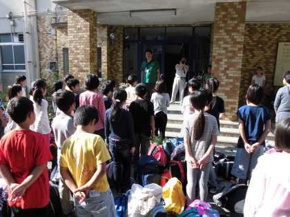 6月18日〜20日の2泊3日で,4年生はみさきの家の野外活動を行います。前日までの雨もすっかり止み,晴天のもとで当日を迎えることができました。欠席する人もなく,全員そろっての出発です。