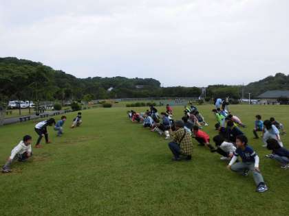 みんなで体操を行い,きれいな空気を思い切り吸い込みました。