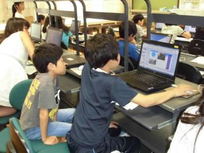 はじめはパソコンの操作に慣れず苦戦していた子ども達ですが,操作にも慣れ,楽しんでパンフレット作りに取り組むことができました。