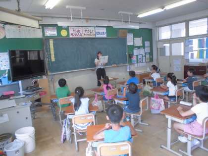 先週は1組,今週は2組で,13日(水)は栄養教諭の先生に,食の指導もしていただきました。