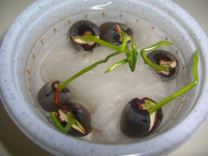 朝,水の中にあった茎が,ぐっと空中に出てきました。明日の朝には,葉を広げているかもしれません。そして,茎の根元をよく見ると,もうひとつ茎のようなものが見えます。明日の朝は,さらに動いているかも…