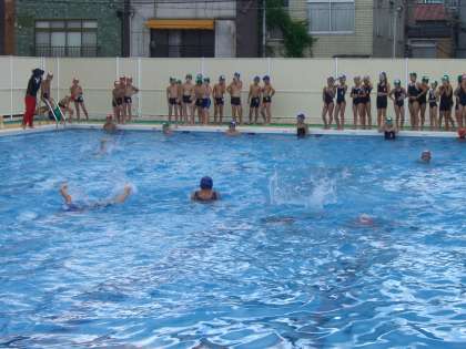 いよいよ夏休みのプールも,明日で終わりです。そこで今日は,これまで頑張って水泳の練習をしてきた成果を試す検定日です。