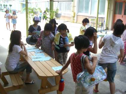 水泳のカードにシールを貼ってもらい,うれしそうに帰っていく子どもたちでした。