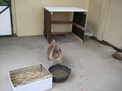 10日ほど前,掃除がしにくかったそれまでの部屋を小さな木箱に替えました。ところが,小さすぎたようで,その部屋には入っていない様子でした。そこで,管理用務員さんが,もう少し大きくて掃除がしやすい部屋を作ってくださったのです。