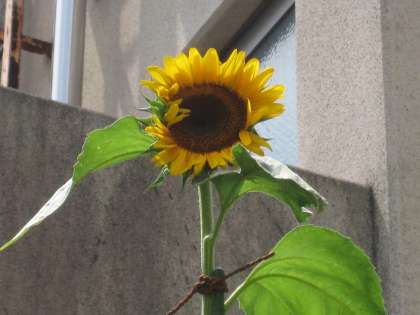 8月21日(土),昨日開ききっていなかった5本目のひまわりが,今日開きました。朝日を浴びて黄色い花びらが美しく輝いています。