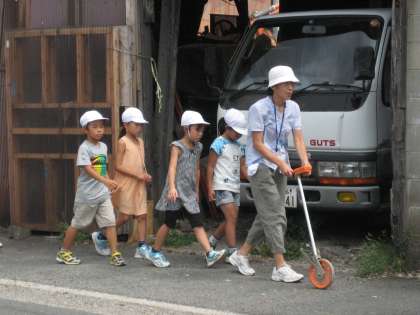 3年生が算数の学習に出かけました。1キロメートルを体感するためです。