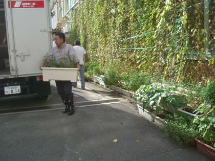 7月のはじめに「みどりクラブ」に参加した子ども達で挿し芽をし,プランターで育ててきて2か月たった120株の藤袴が,今日,梅小路公園にお出かけしました。≪藤袴と和の花展≫に出品するためのお出かけです。