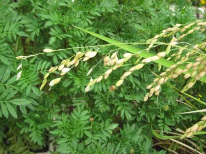 先日色づき始めたイネの穂をご紹介しましたが,よく見ると,所々お米の粒がなくなっているのが気になっていました。